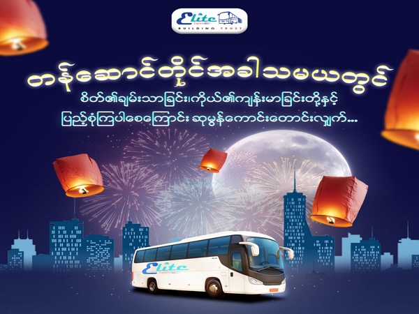 Elite Express အဆင့်မြင့်ခရီးသည်ပို့ဆောင်ရေးလုပ်ငန်းကို ၂၀၁၁ ခုနှစ်တွင် စတင်တည်ထောင်ခဲ့ရာ ယခုဆိုလျှင် (၁၄) နှစ်တိုင်ပြည့်ခဲ့ပြီဖြစ်ပါသည်။ ပြည်တွင်းရှိ ခရီးသွားမိတ်ဆွေ မိဘပြည်သူများနှင့် လုပ်ငန်းရှင်မိတ်ဖက်များ၏ သွားရေးလာရေး ၊ ပို့ဆောင်ဆက်သွယ်ရေးများ အဆင်ပြေလွယ်ကူ ချောမွေ့စေရန်အတွက် မြန်မာပြည် နေရာအနှံ့အပြားရှိ မြို့ပေါင်း (၂၅) မြို့ သို့ နိုင်ငံတကာအဆင့်မှီ Air Con Bus များ SCANIA နှင့် SC NEUSTAR အမျိုးအစား ခရီးသွားယာဉ်အသစ်များဖြင့် ခရီးစဉ်များအား နေ့စဉ်ပြေးဆွဲ၍ ဝန်ဆောင်မှုများပေးလျက်ရှိပါသည်။ Elite Express ဝန်ဆောင်မှုများအား အချိန်နှင့်တပြေးညီ ဆက်သွယ်ရရှိနိုင်ရန်အတွက် အမြို့မြို့အနယ်နယ်ရှိ မြို့ကြီးများတွင် ပင်မဂိတ်များ ဖွင့်လှစ်ပေးထားရုံသာမက လက်မှတ်အရောင်းကိုယ်စားလှယ်ဆိုင်များကိုလည်း ချိတ်ဆက်ဆောင်ရွက် ပေးလျက်ရှိပါသည်။ နည်းပညာဝန်ဆောင်မှုသစ်တစ်ခုအနေဖြင့် Online Payment များဖြင့် ခရီးစဉ်လက်မှတ် ဝယ်ယူနိုင်သော Customer Mobile Application ကိုလည်းထုတ်လုပ်၍  လုံခြုံစိတ်ချရမှုအပြည့်အဝဖြစ်သော  ဝန်ဆောင်မှုများအား တိုးမြှင့်ပေးအပ်လျက်ရှိသည့်အပြင်  (၁၂) နှစ်တာကာလတိုင် ပိုမိုကောင်းမွန်အောင် စဉ်ဆက်မပြတ် ကြိုးစားခဲ့ရာ အဝေးပြေးခရီးသွားလုပ်ငန်းဈေးကွက်တွင် Customer များ၏ ယုံကြည်အားပေးမှုအားများစွာရှိထားသော အဆင့်မြင့်ယာဉ်လိုင်းတစ်ခုအဖြစ်လည်းရှိနေခဲ့ပါသည်။ ယခုလက်ရှိတွင် ယာဉ်အစီးရေပေါင်း SCANIA (၁၀၈) စီး ၊ SC NEUSTAR (၂၂) စီးတို့ဖြင့် နေ့စဉ်ပြေးဆွဲနေပြီး ခရီးသည်ပေါင်း (၂၀၀၀) ခန့် တို့၏ စီးပွားရေး ၊လူမှုရေး ၊ လမ်းပန်းဆက်သွယ်ရေး နှင့် ကုန်စည်ပို့ဆောင်ရေး အခက်အခဲများအတွက် ကူညီဆောင်ရွက်ပေးလျက်ရှိရာ ပြည်တွင်းအဆင့်မြင့်ခရီးသည်ပို့ဆောင်ရေး လုပ်ငန်းကြီးအဖြစ် ယနေ့ထိတိုင်ဂုဏ်ယူစွာရပ်တည်နေနိုင်အောင် ယုံကြည်ပေးပါသော ခရီးသွားဧည့်သည် တော်လူကြီးမင်းများ နှင့် အကောင်းမွန်ဆုံး ဝန်ဆောင်မှုပေးနေသော ဝန်ထမ်းများကို အမြဲကျေးဇူးတင်လျက်ရှိပါသည်။